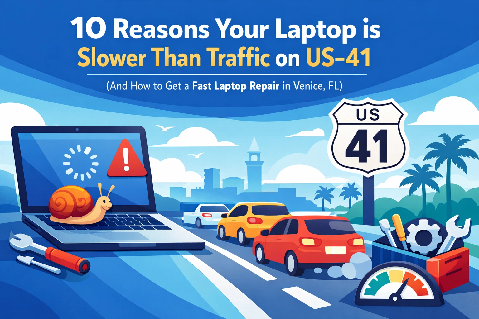 Another day, another spinning wheel of death! If you’ve lived in Venice, FL for more than five minutes, you know the frustration of being stuck on US-41 during season. You’re sitting there, staring at a bumper, wondering if you’ll ever reach your destination. Now, imagine that same feeling, but it’s happening on your laptop screen while you’re trying to send an urgent email or finish a project for your business.